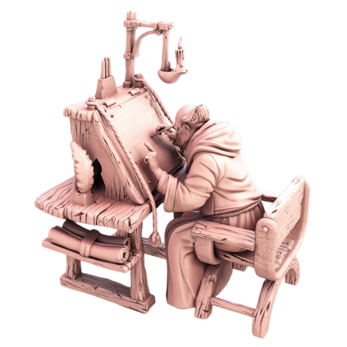 Dungeons & Dragons - STL Miniatures - Abbey Monk at writing desk